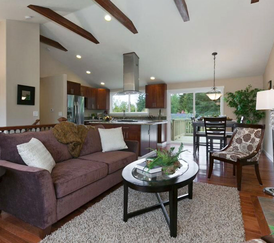 - Vaulted Ceiling - Removed existing ceiling in Kitchen, Dining Living rooms to expose beams and create vaulted ceiling